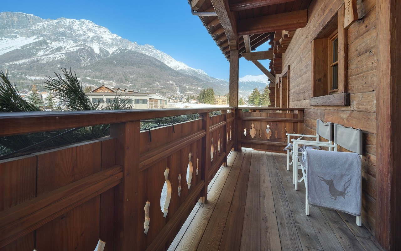 Appartamento luminoso ed estremamente accogliente, è disposto su due livelli. Al primo piano c'è una cucina riccamente equipaggiata (piastra vetroceramica, lavastoviglie, forno microonde e tutto ciò che può servire) combinata ad una zona giorno con vista panoramica sulla splendida conca di Bormio. Al secondo piano ci sono due camere da letto comunicanti che possono ospitare fino a 4 persone.