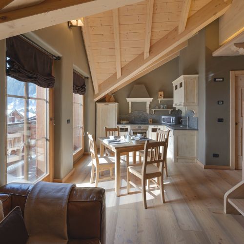 L'appartamento Ortles può essere occupato sia in formula residence che in formula hotel comprensiva di pulizie giornaliere, cambio biancheria, colazione ed eventualmente cena.